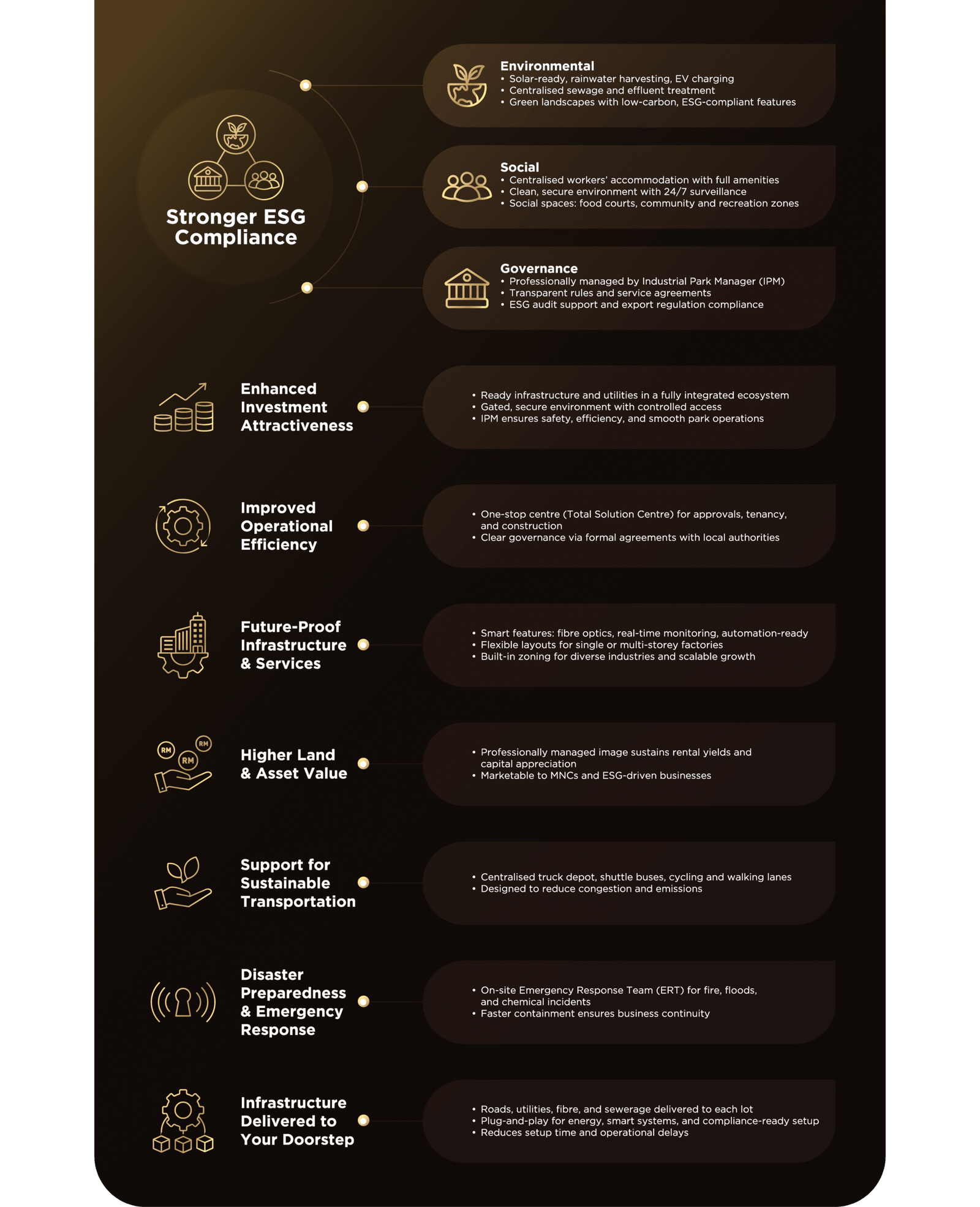 experience for businesses and stakeholders. Designed with connectivity in mind, the park enables efficient operations and seamless logistics.